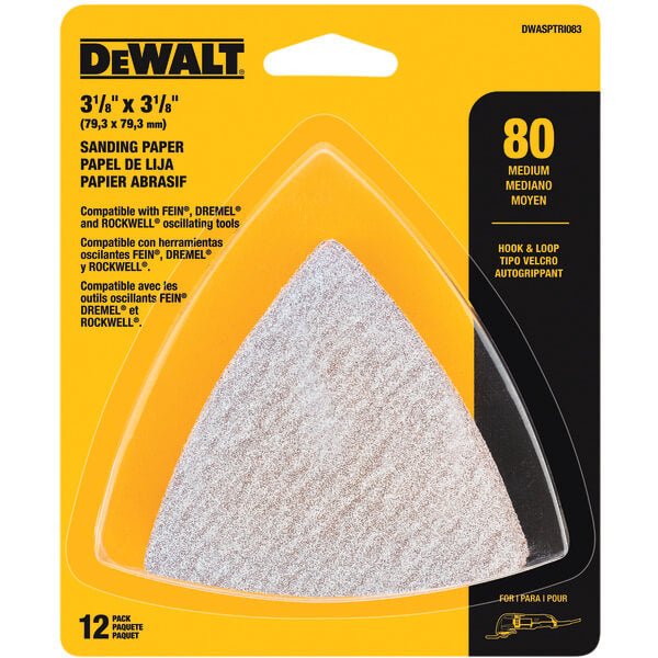 Papier de verre triangulaire auto-agrippant DEWALT DWASPTRI083, grain 80, paquet de 12