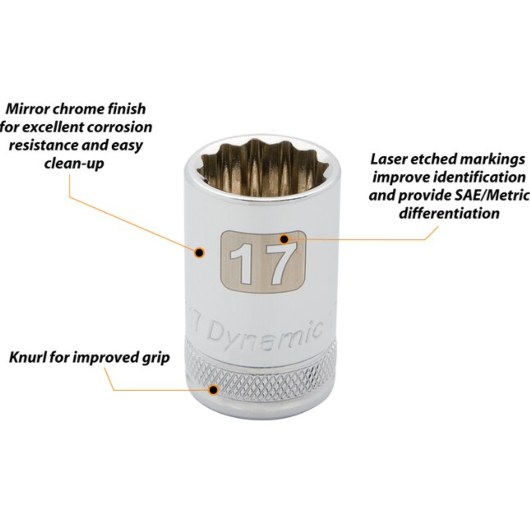 Dynamic GT-D018006 - Jeu de 19 douilles métriques standard 12 pans 10-28 mm